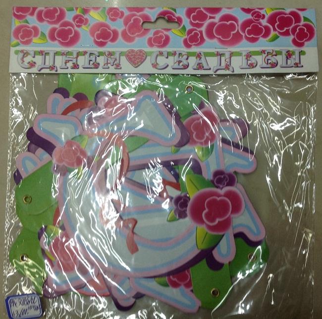 Гирлянда бумажная “С Днём Свадьбы”, длина гирлянды 200 см.