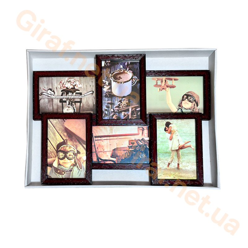 Фоторамка-коллаж 6 фото 10 х 15 см багет “Тёмное Дерево”, 47х33 см. отличной подойдёт тем кто не любит создавать “цветовой шум” дома, особенно если жилое пространство оформлено в конкретном стиле интерьера! Все просто, понятно, а главное надежно и долговечно!