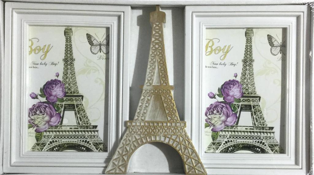 Фоторамка коллаж на 2 фото Париж, с позолотой