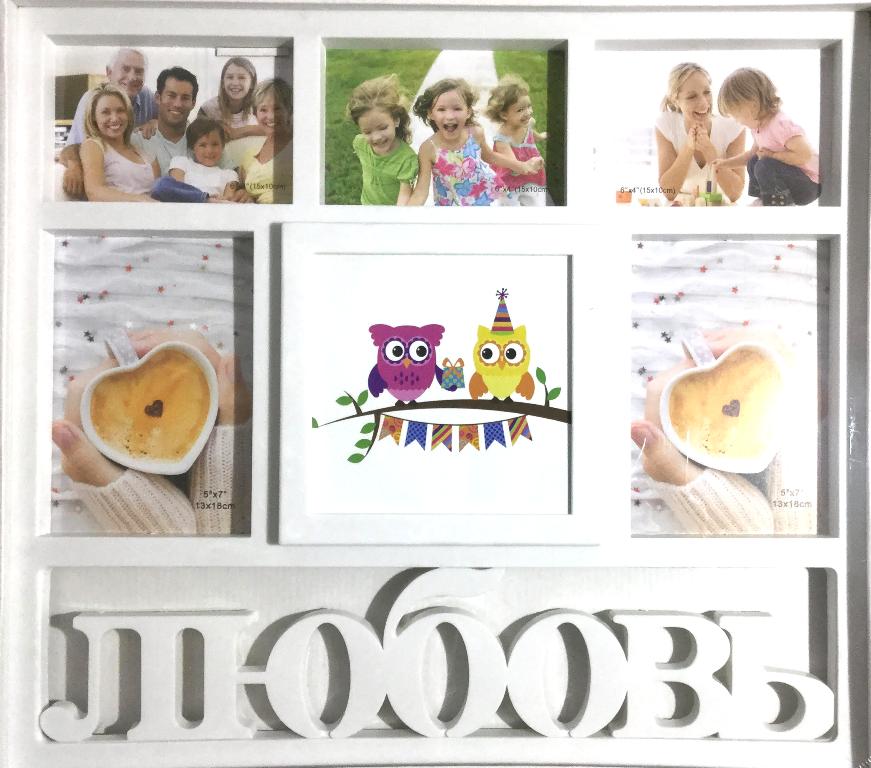 Фоторамка на 6 фото с надписью Любовь, белая