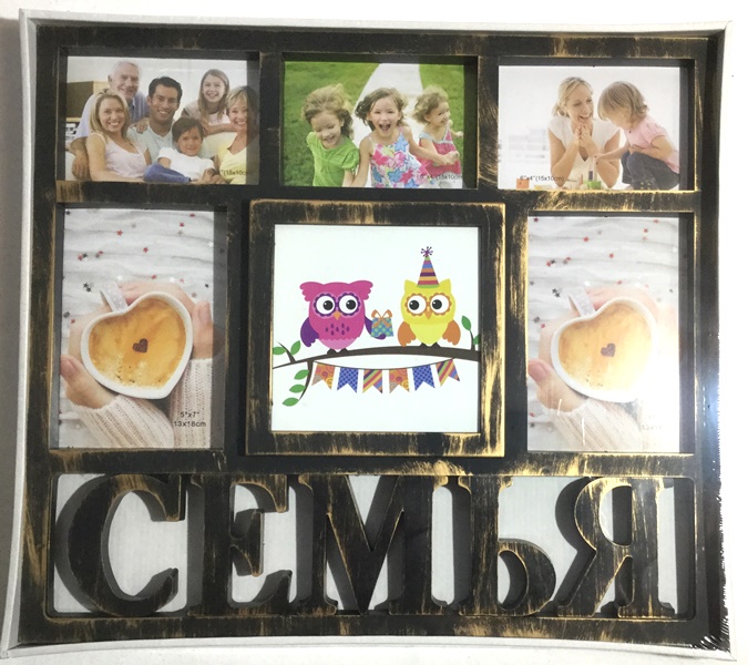 Прекрасная фоторамка коллаж бронзовая на 6 фото Семья в Украине стала самой востребованной среди наших покупателей. У нас вы можете приобрести широкий ассортимент больших фоторамок и коллажей от 2 фото до 24 фотографий. Качественные и красивые фоторамки оптом со клада в Одессе, все рамочки в наличии, отправим в день заказа.