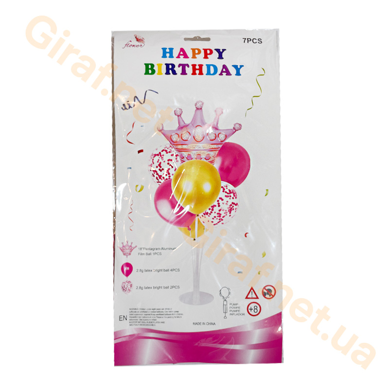 Набор воздушных шаров 7шт. с подставкой 70см. Корона розовая (140)