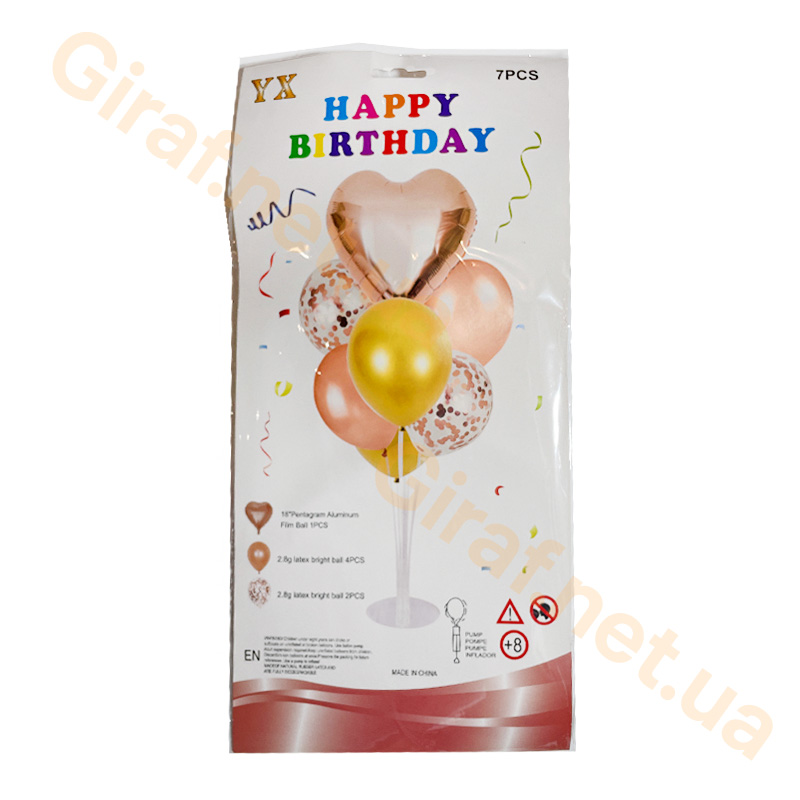 Набор воздушных шаров 7шт. с подставкой 70см. Сердце розовое-золото (135)