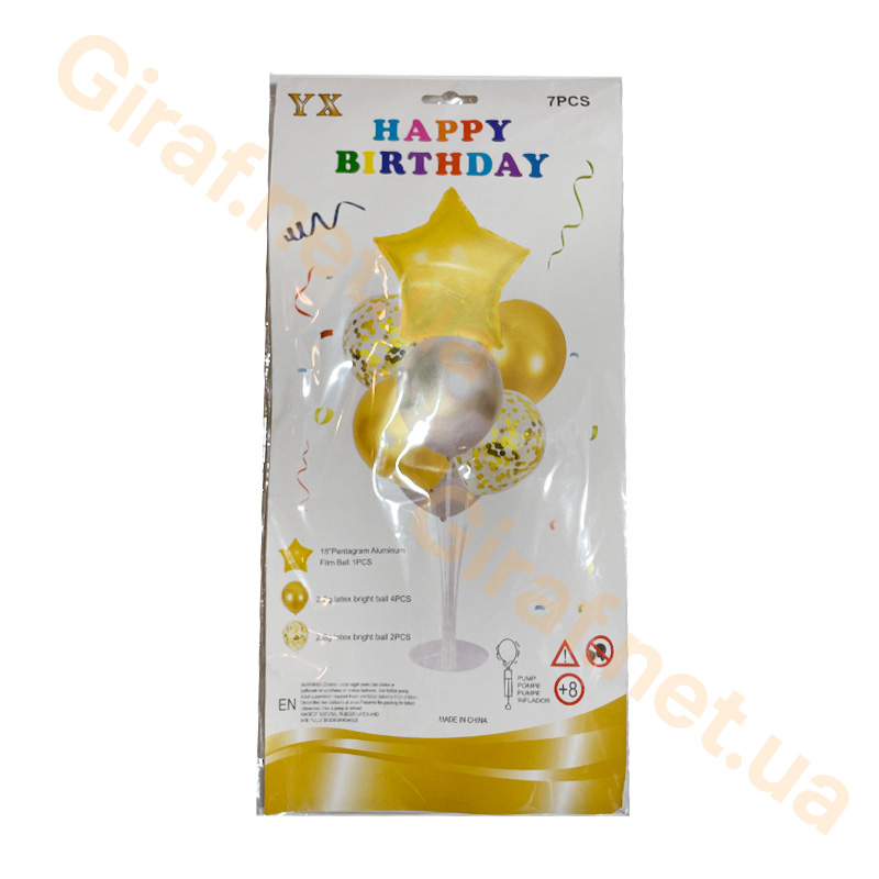 Набор воздушных шаров 7шт. с подставкой 70см. Звезда золото (131)