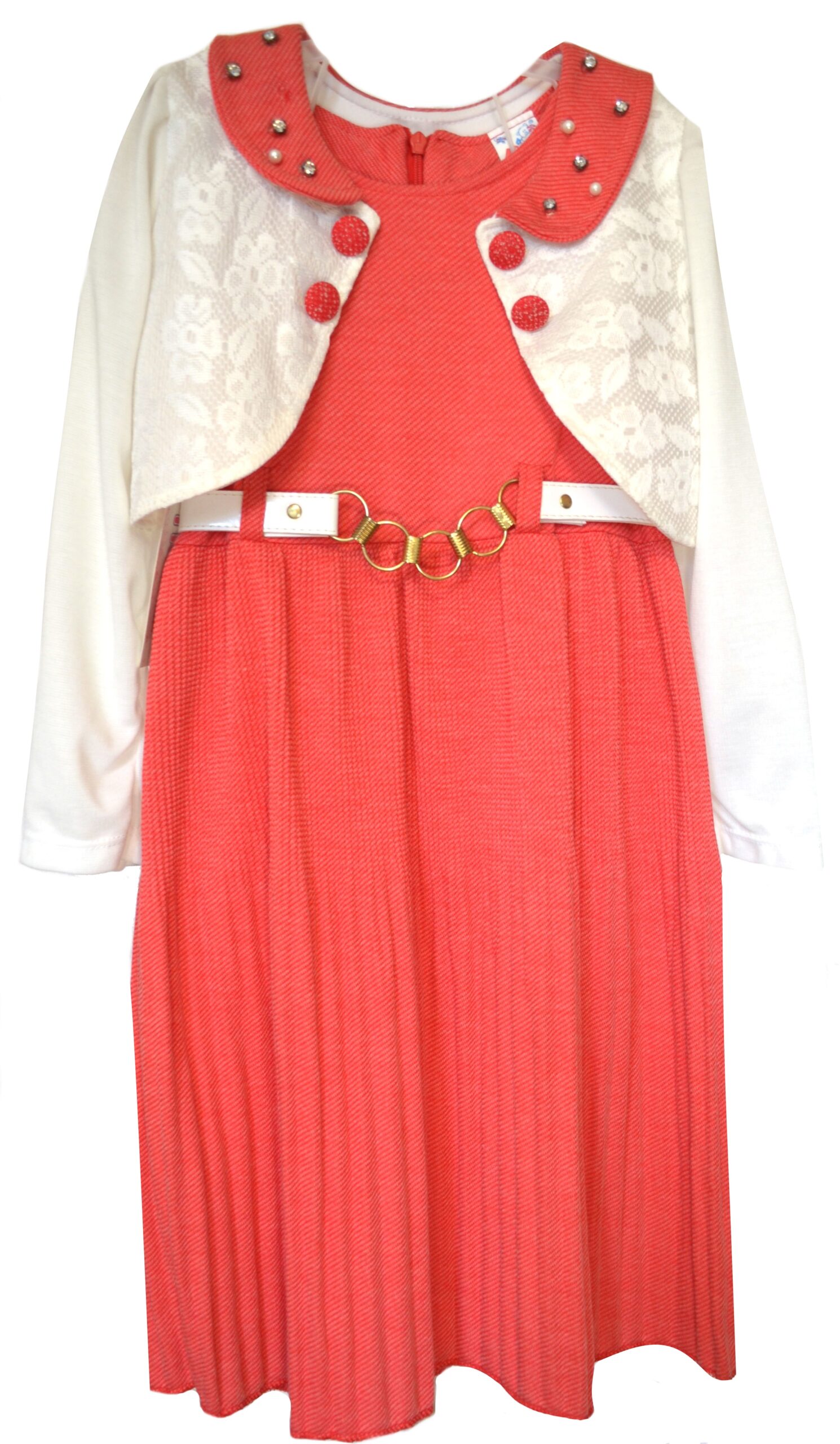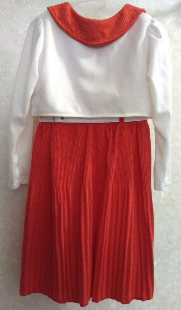 Платье с белым болеро, украшено стразами, юбка плиссированная, платье полушерстяное.