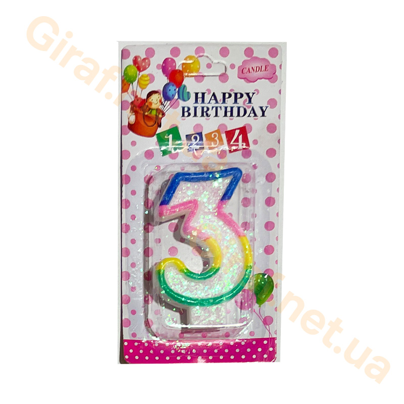 Свеча для торта в виде цифры Три, яркие, блестящие