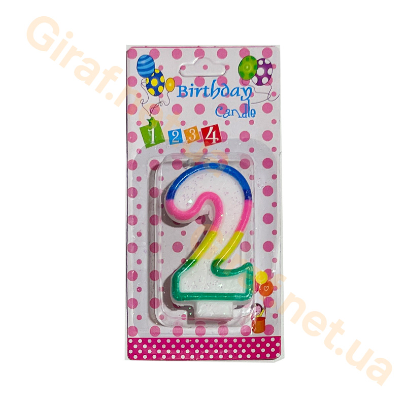 Свеча для торта в виде цифры Два, яркие, блестящие