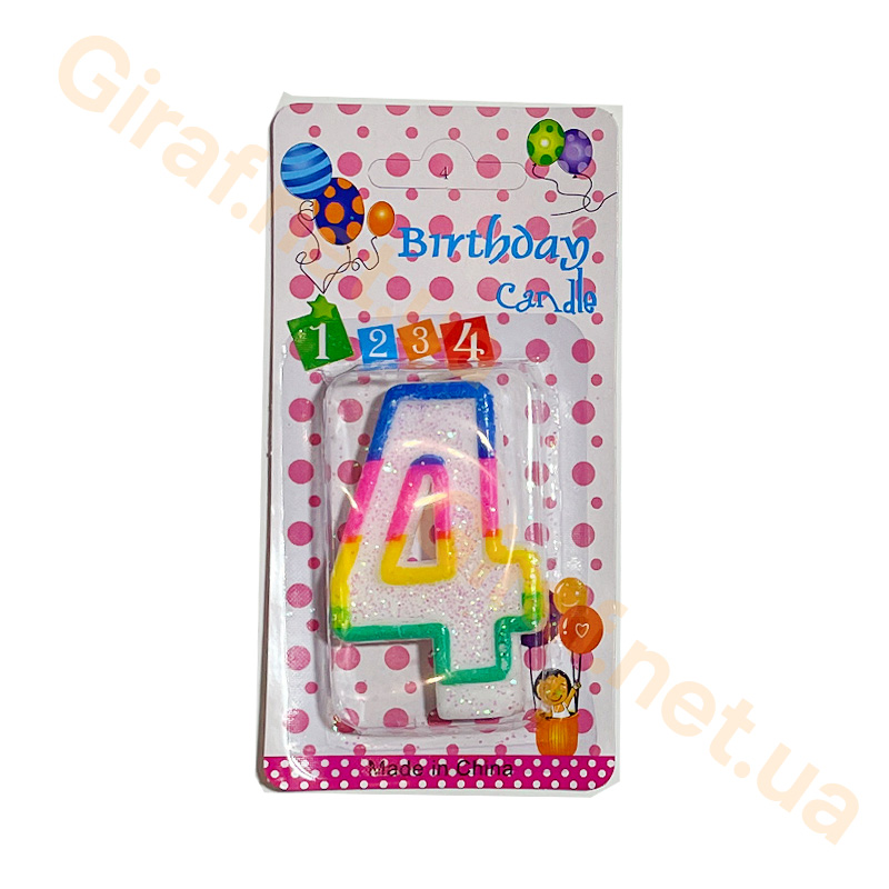 Свеча для торта в виде цифры Четыре, яркие, блестящие