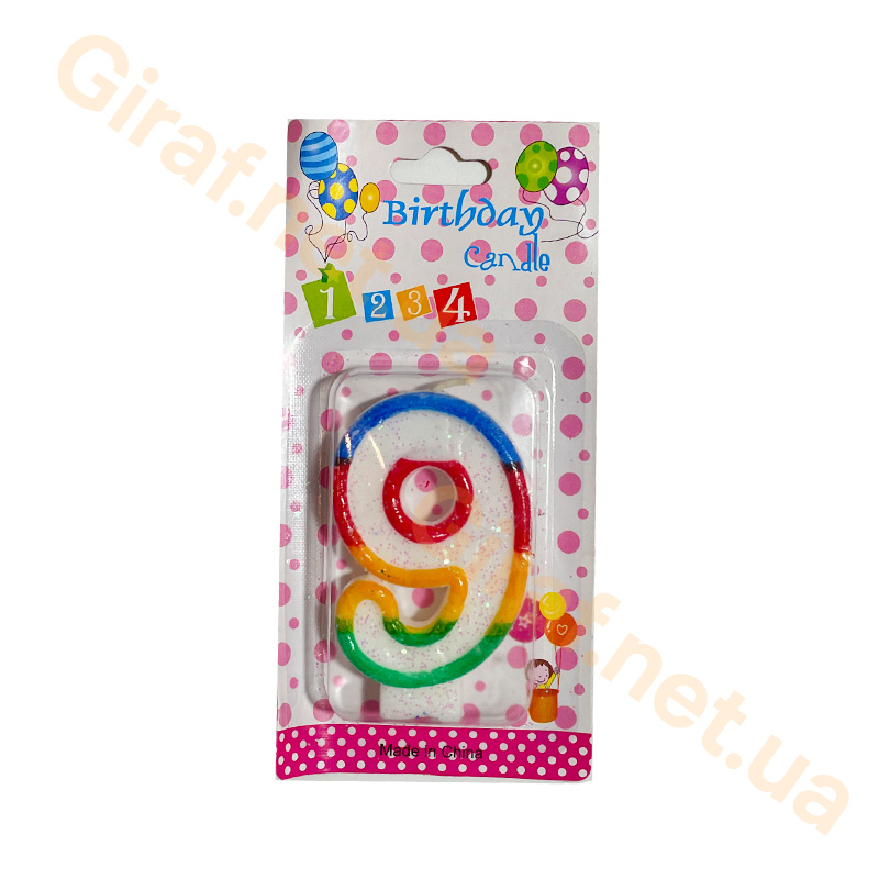 Свеча для торта в виде цифры Девять, яркие, блестящие