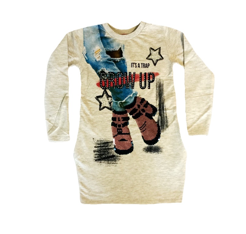 Туника платье на 4-12 лет “Grow up” серого цвета