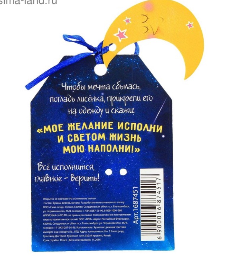 Значок на открытке «На исполнение мечты»