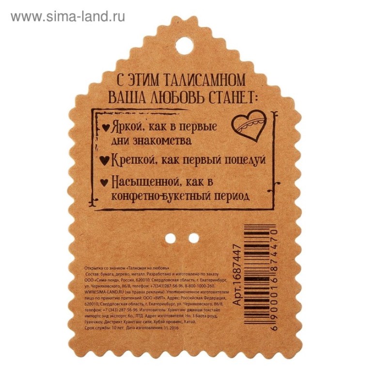 Значок на открытке «Талисман любви»