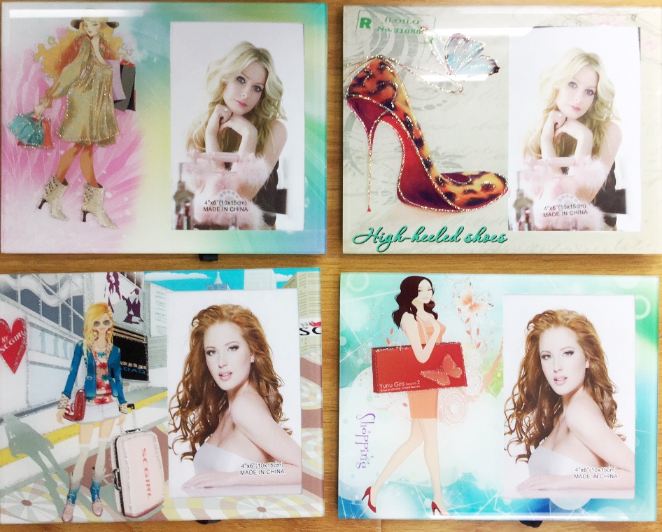 Рамка 10х15 Модниця скляна із золотим напиленням, 17х22 см. 4 види.