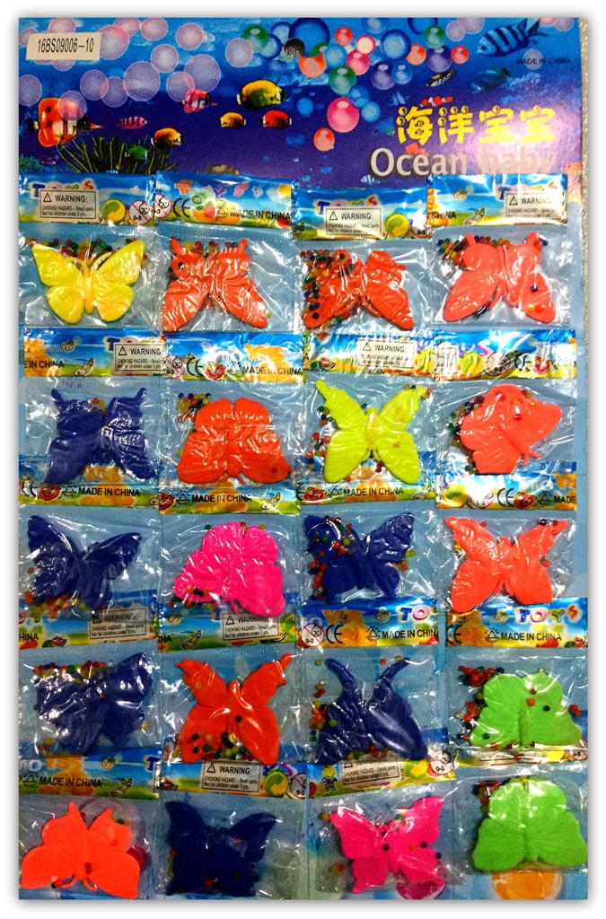 Біо-Гель Океан ваву Метелики На аркуші 20 пакетиків. У пакетику кольорові гранули та метелика Збільшується у воді