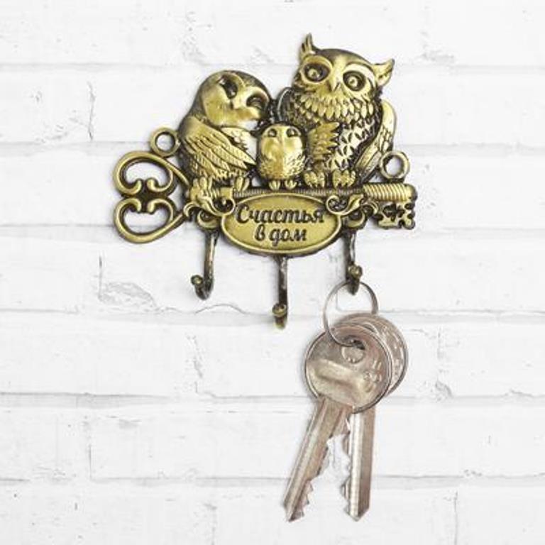 Ексклюзивний дизайн ключниці робить виріб цікавим предметом декору вашого будинку. Тепер ключі завжди на своєму місці. Ключниця виготовлена з металу бронзового кольору, упакована в гарну подарункову коробочку. Виріб легко кріпиться до стіни, має 3 металеві гачки.
