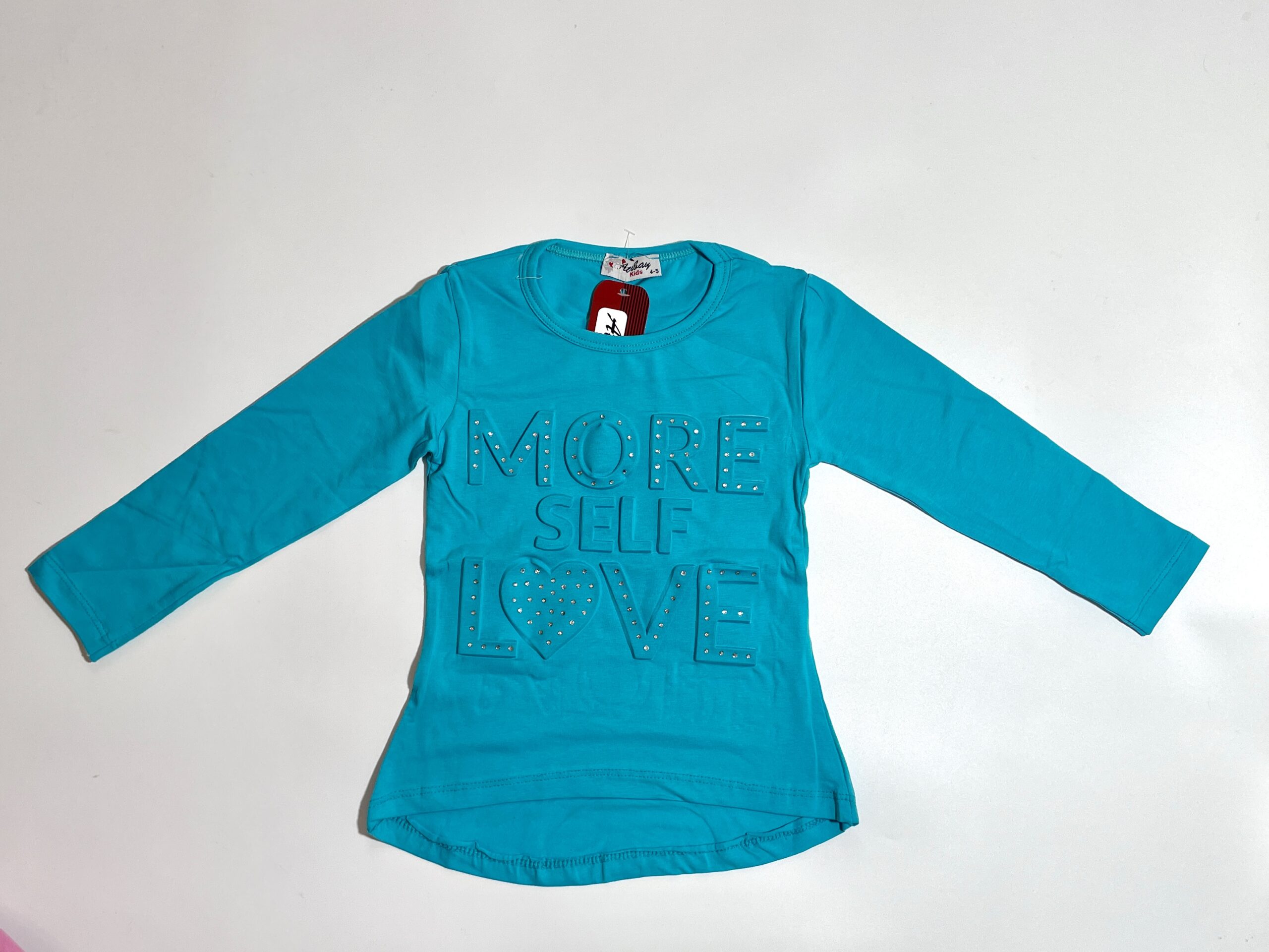 Кофточка “More Love” бірюзова на 5, 6, 7, 8 років, в ростовці 4 шт. Кофта прикрашена стразиками та об’ємною печаткою