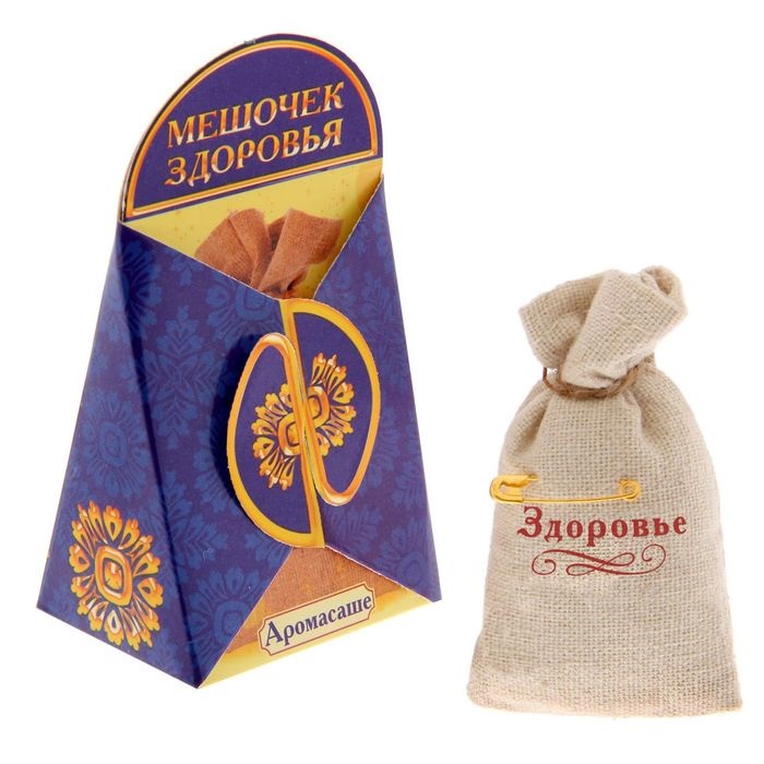 Мішечок з ароматизованими травами упаковано в дизайнерську упаковку з побажаннями. На мішечку є шпилька, за допомогою якої можна закріпити талісман на одязі, в сумці або іншому місці. Порадуйте себе або своїх близьких, купивши в подарунок аромасаші на залучення здоров’я.