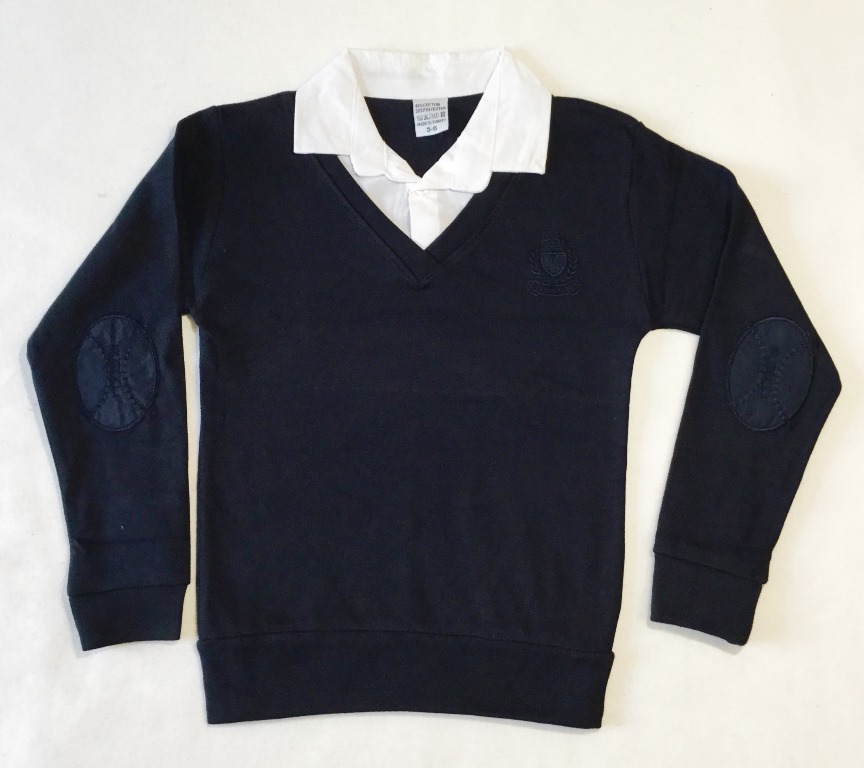 Кофта-трикотажна тканина, комір з сорочкової білої тканини.