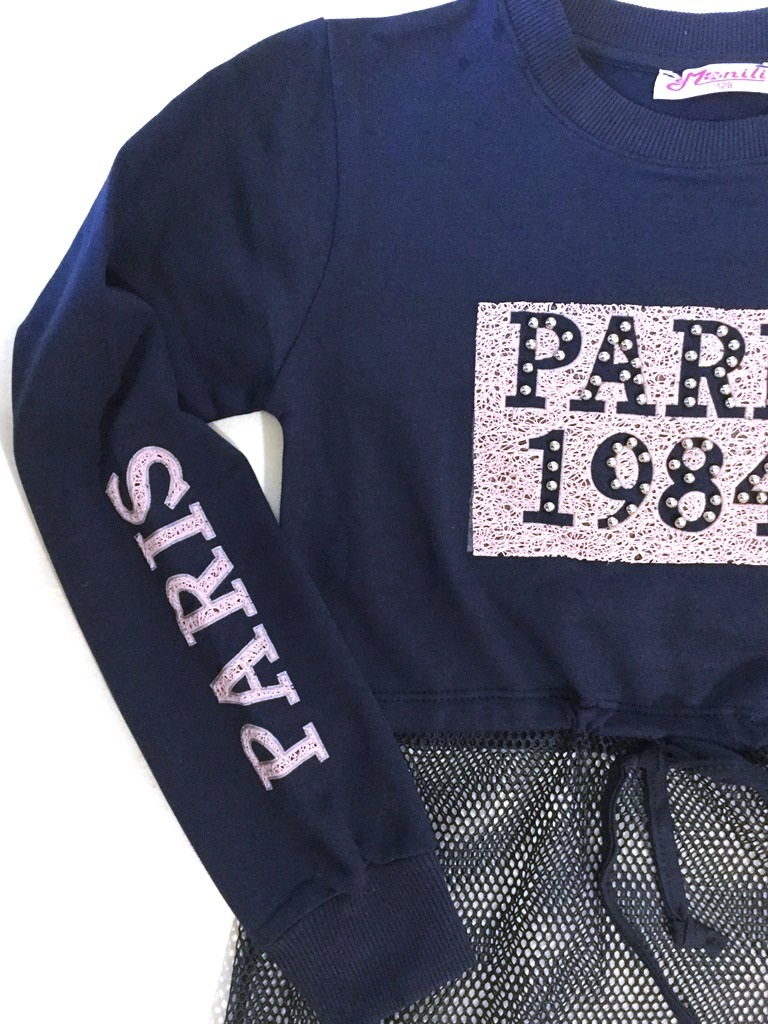 Укорочений світшот для дівчаток “Париж” синій 8099